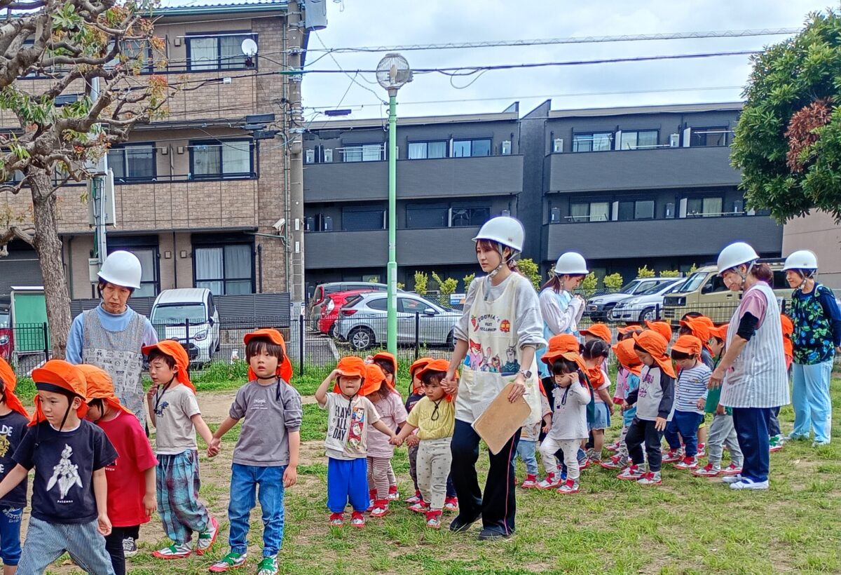 避難訓練をしました。 2026.04.15 ブログ 今日は避難訓練を行いました。 乳児さんたちはお部屋の中で、 ばら組・ゆり組・ひまわり組は、近くの公園まで実際に避難しました。 いつもと違う雰囲気の中でも、先生の話をよく聞き、落ち着いて行動する姿が見られました。 その表情は少し緊張しながらも、とても真剣で、頼もしさを感じるひと時でした✨ いざという時に自分の身を守る大切さを、これからも子どもたちと一緒に考えていきたいと思います。