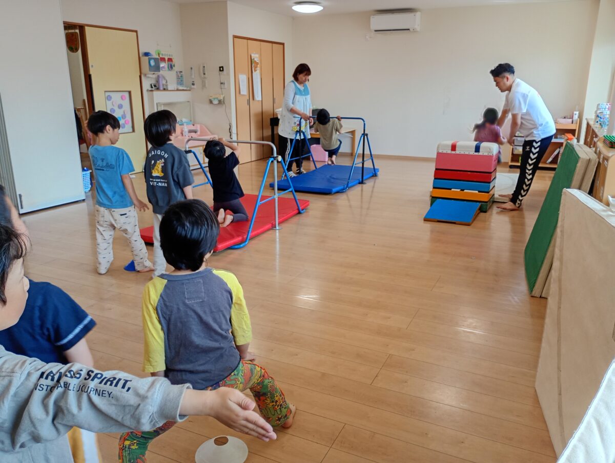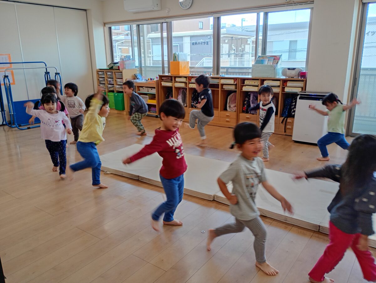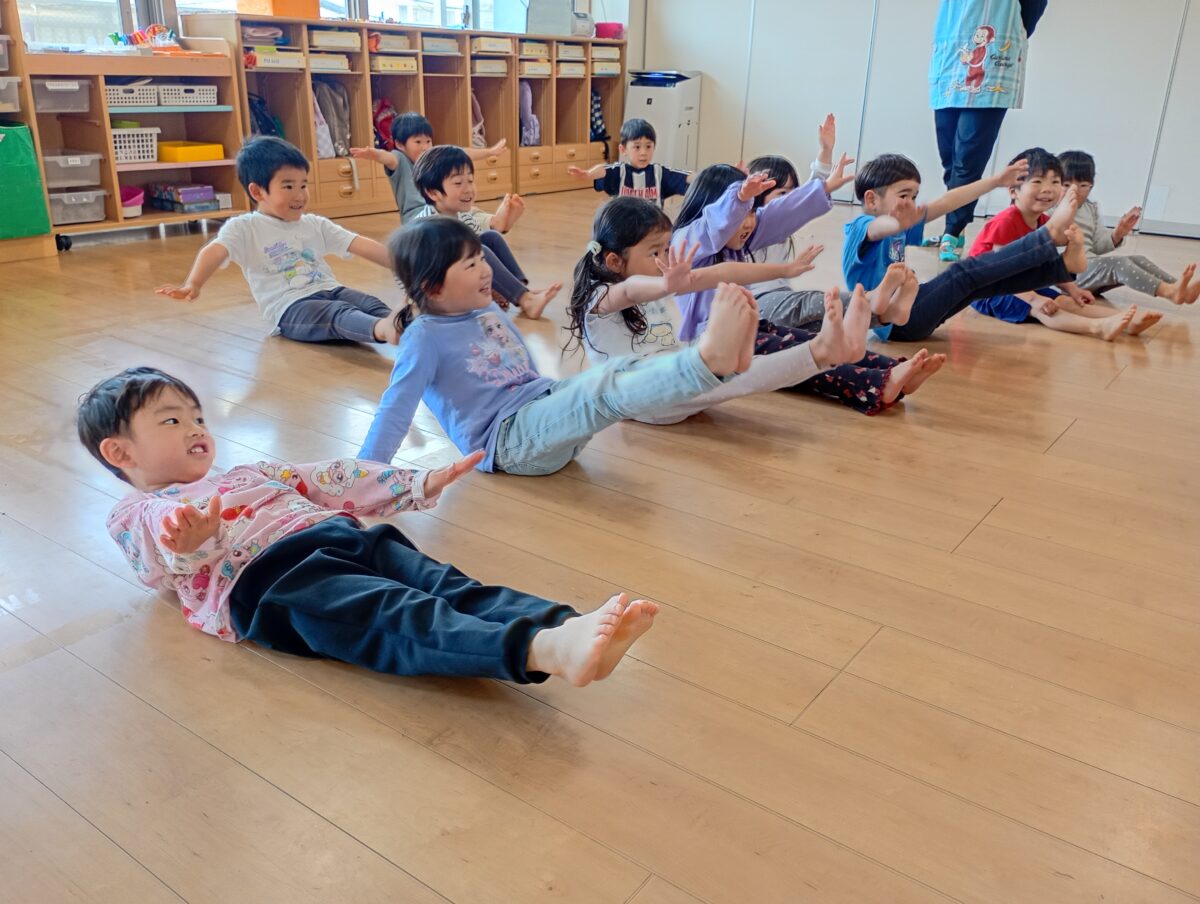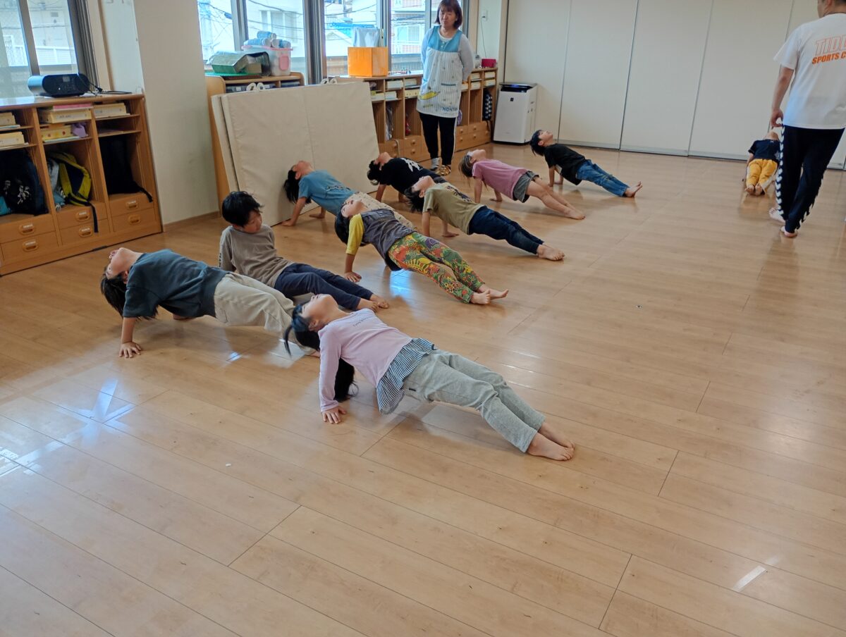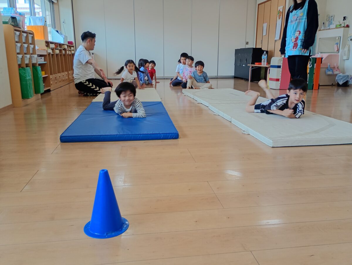 難しい動きにも意欲的に挑戦し、「こんなこともできるの?」と驚く場面がたくさんありました。日頃から体を動かして遊んでいる積み重ねが、しっかりと力になっていることを感じました。